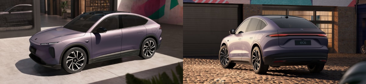 NIO's new EC6 model was launched in September 2023. The new EC6 model is 4,849 mm in length, 1,995 mm in width and 1,697 mm in height. This iconic fastback coupé is equipped with a dual-mode active spoiler and a smooth, curved contour that gives the rear of the vehicle an expressive silhouette. The new, luxury EC6 is priced in China at over fifty thousand dollars for the 75-kWh battery pack type and over fifty seven thousand dollars for the 100-kWh battery pack type. The latest type of Ultrasuede® uses plant-derived resources as part of the raw materials, and is utilized for multiple parts of the upholstery.