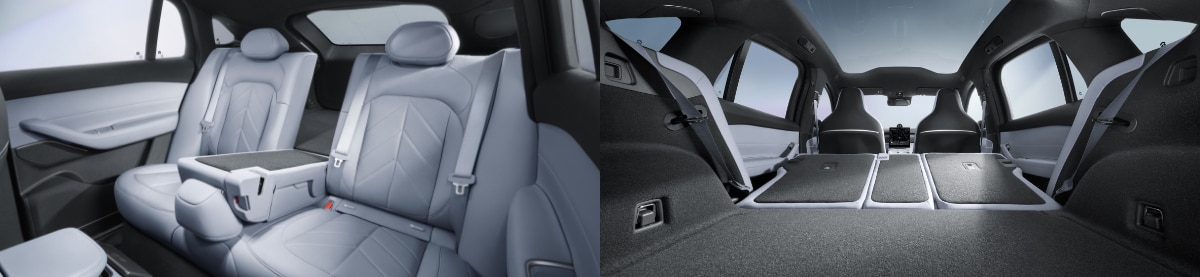 The new EC6 inherits the philosophy of giving passengers a second living room with its enveloping interior. Fine details such as invisible smart air vents, deco strips with a gentle gloss and polished microswitches create a space that is simple and sleek. Also, acoustic conditions are optimized in a total of 59 areas, enabling excellent noise, vibration, and harshness (NVH) performance. The use of Ultrasuede® in the ceiling, pillars and sun visors gives the vehicle a luxurious and warm atmosphere. The roof features a large 1.770 m2 panoramic sunroof that allows for a daylighting area of 1.156 m2, along with a 4.96 mm double-layer heat/sound insulating glass as standard, bringing sunlight and warmth into the vehicle.
